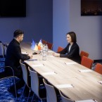 Санду обсудила вопрос о продолжении давления на Россию с Зеленским. Говорили также о совместном пути к членству в ЕС. Хотя это под вопросом, Зеленский призывает идти «одновременно и тесно скоординированно».